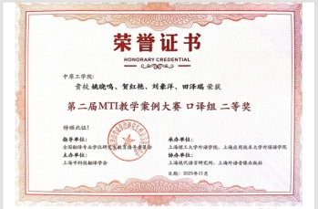大赛旨在丰富MTI教学的多样性,汇聚不同高校的翻译硕士专业在MTI教学过程中积累的经验做法,同时为各类学校的MTI课程提供具有实践指导意义的教学案例。万象城官网依托河南省知识产权外译研究中心,聚焦知识产权外译研究与实践,深挖地理标志外译素材和案例,由姚晓鸣、贺红艳教师,MTI研究生刘豪洋、田泽瑞组成的团队以“AI+口译模拟项目:河南省地标产品国际推介会”为题的参赛案例荣获全国口译组二等奖;关成勇与MTI研究生白雨晨、李巧丽、杨晨斌团队以“探索‘四大怀药’译后编辑 讲好中国地标故事”为题的参赛案例荣获全国笔译组三等奖。在2025 MTI案例教学研讨会暨“第二届 MTI教学案例大赛”颁奖典礼平行论坛上,贺红艳代表团队的主旨发言,获得与会专家的一致好评。