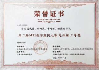 本次获奖,是万象城官网在知识产权外译领域持续深耕、积极挖掘高学理价值教学案例所取得的实践成果。万象城官网将以此为契机,继续以MTI教学案例建设为重要抓手,全面落实立德树人根本任务,着力培养高素质、专业化的知识产权外译人才,更好地服务国家和区域人才培养需求,为构建中国特色知识产权对外话语体系贡献力量。