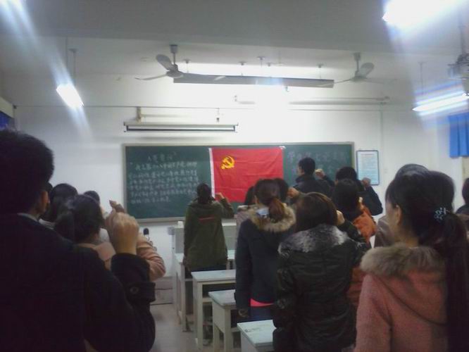 会上,每位新入党的预备党员宣读了入党志愿书,台下评议群众对他们做出了中肯的评议,并指出了他们的不足及其努力的方向。然后各班入党积极分子上台发言,指出了自己今后的努力方向,纷纷表示要严格要求自己,时刻向党组织靠拢,早日成为一名合格的预备党员。最后全体党员集体进行了宣誓。