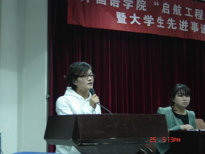 动员会后,获得本学年国家奖学金的刘鹏征同学、国家励志奖学金的邢红锦同学和社会实践先进个人朱瑞娇、赵梦梦、刘奥美同学分别发言,就自己的大学成长和取得的成绩,学习方法和社会实践情况做了介绍,他们以自己的亲身经历和感受为学弟学妹们上了生动的一课。