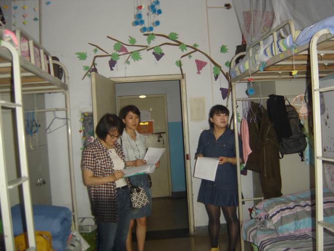 近日,根据《科技处联系万象城allwincity官网工作计划》的具体安排,科技处处长助理周纪昌、办公室主任李红宇、项目科科长王雅、成果科科长王艳芝分别走访了万象城官网男生和女生宿舍。万象城官网党总支副书记李向东、团总支副书记杨为学和辅导员刘爽、陈杰陪同了走访。走访发现,万象城官网学生宿舍卫生状况整体良好,宿舍氛围温馨和谐,学生们精神饱满、彬彬有礼,给科技处老师留下深刻印象。