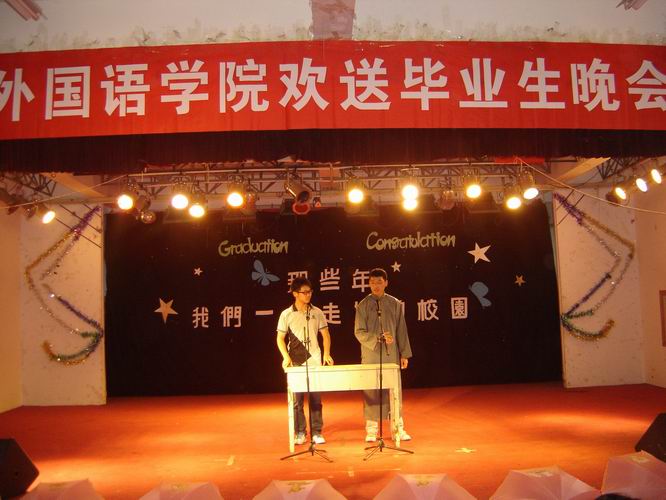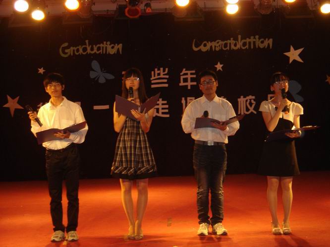 晚会有优美动听的歌曲、动感十足的爵士舞、幽默搞笑的相声、热闹非凡的互动环节,还有深情的诗歌朗诵,着实为在场的观众献上了一场视听盛宴。汉语112班的深情朗诵《写在离别的渡口》深切表达了离别的不舍和感伤;优美的华尔兹《雪中花》也舞出了对毕业生“明天生活更美好”的祝愿。在晚会节目中穿插播放了学院领导和老师对毕业生的寄语,使毕业生们深受感动和鼓舞。在毕业班的班级生活PPT展示中,英语081和汉语081分别展示了大学四年同学们走过的点点滴滴,使毕业生们重温过去快乐的时光,也让低年级同学深感同学友谊的珍贵和班级和谐氛围的重要。晚会还通过微博互动、现场抽奖等形式,增加了观众的参与性,低年级同学通过微博或手机短信表达了对毕业生的期望和祝福,毕业生们也表达了对学校的留恋和今后人生展望。晚会娱乐节目精彩,感情挥发浓郁。
