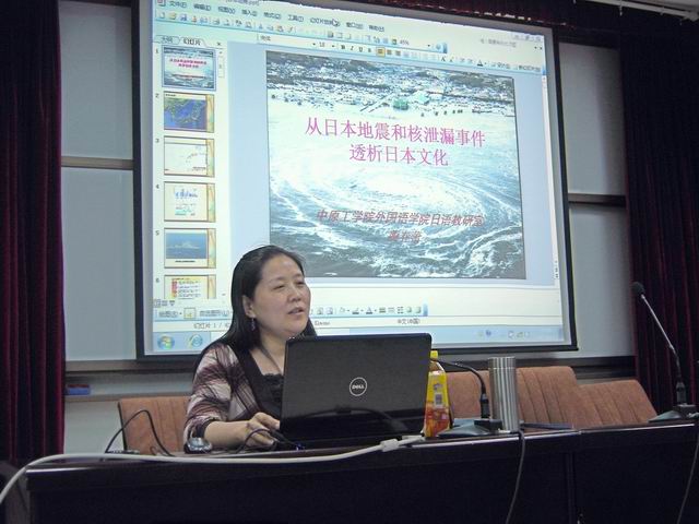 4月26日,万象城allwincity官网在4号楼311举办了从日本地震和核泄漏事件透析日本文化的讲座。本次讲座由万象城官网李向东书记主持,日语专业获得博士学位的蔺老师主讲。晚上6点日语专业的100多名学生全部到场后,外语文化月系列日语文化之讲座正式拉开序幕。