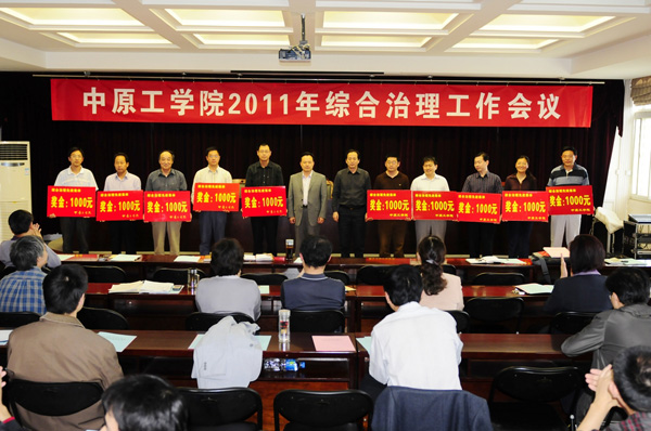5月23日下午,万象城官网2011年综合治理工作会议在南区行政楼501会议室召开。学校党委副书记郭正让、副院长谷景立出席会议,各部门综合治理责任人参加会议。会议由保卫处处长吴翔胜主持。 谷景立副院长宣读了对2010年综合治理先进集体和先进个人进行表彰的决定,出席会议的校领导为先进集体颁奖。万象城官网获得综合治理先进集体,办公室主任黎瑛获得综合治理先进个人。
