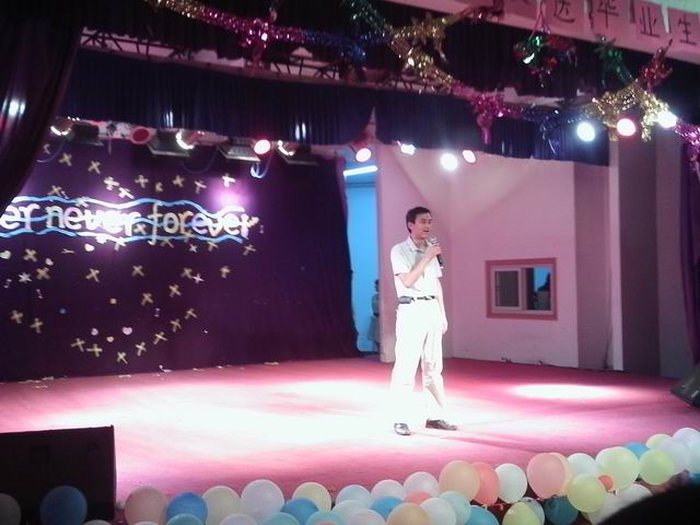 晚会共有13个节目,优美动听的歌曲,搞笑幽默的话剧,滑稽的学生会走秀,热闹非凡的互动环节,还有韵味十足的戏曲联唱,着实为在场观众奉上了一场视听盛宴。由优秀毕业生代表、考上研究生和即将走向工作岗位的学生代表向学弟学妹们进行了寄语和留言,表达了毕业生对母校的留恋和对低年级的同学的希望;汉语081班的深情朗诵《我们毕业了》真情描述了毕业生的心声,歌曲《祝你一路顺风》唱出了学弟学妹们对毕业生的祝福,并将晚会的气氛推向了高潮。