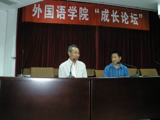 9月25日晚,在南区4号楼311学术报告厅,万象城allwincity官网举办的“成长论坛”系列活动开讲,广东外语外贸大学博士生导师杜金榜教授成为开坛嘉宾,在副院长(主持工作)郭万群教授的主持下,杜教授讲述了自已的成长经历和一些心得体会,并向学生们提出,大学生做事要有计划性,尤其是对于学习,要做好计划,不断完成一个个目标,才能够取得成功。杜教授讲完后,与在场学生进行了互动交流,学生们针对大学生活提出了一些困惑,例如:如何处理学习与兴趣爱好的关系?如何学好英语?如何让自己保持学习动力?杜教授一一作答,谈吐幽默,高潮迭起;郭教授也及时点拨,启人心智。