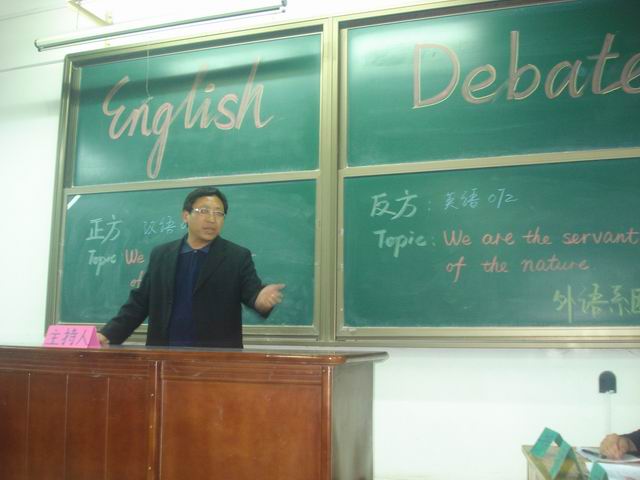 本场辩论赛的正方选手是来自对外汉语081班的李丹(一辩)、吕青(二辩)、刘真(三辩),主题是“We are the master of the nature ”;反方选手是来自英语072班的张润华(一辩)、苏航(二辩)、潘红(三辩),主题是“We are the servant of the nature”。比赛现场气氛活跃,辩手们唇枪舌剑,针锋相对,互不相让,把现场气氛推向高潮,一阵阵掌声和笑声无不彰显着比赛的精彩。 最后,通过评委老师们评定,反方以充足的论据和强盛的气势获得胜利,而“最佳辩手”由正方二辩吕青同学获得。比赛结束后张智中博士为本场辩论做了整体的评价,并发表了感受。