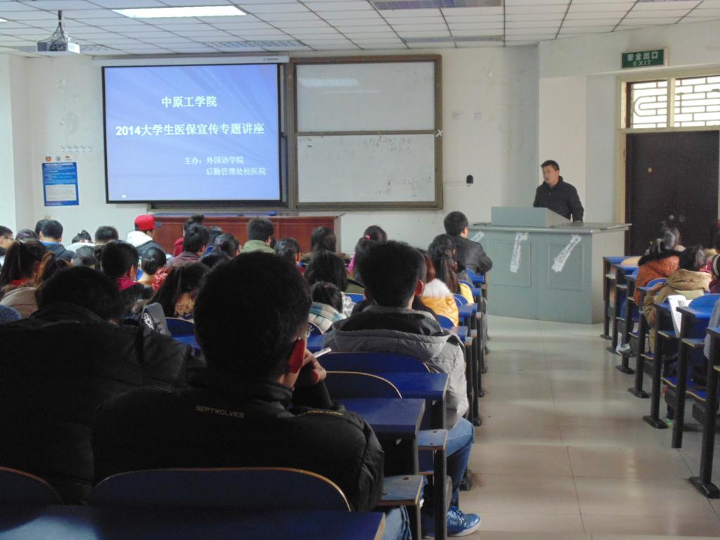 2014年3月12日,万象城allwincity官网联合校后勤管理处校医院,在四号楼201,为全校学生召开“2014大学生医保宣传专题讲座”。讲座中,校医院王新峰老师耐心地就同学们不解的医保额度、医保使用方法以及医保的好处等方面做了详细介绍。并且通过生动的事例,让同学们了解医保的正确使用方法和流程。此次专题报告得到了同学们的一致好评。