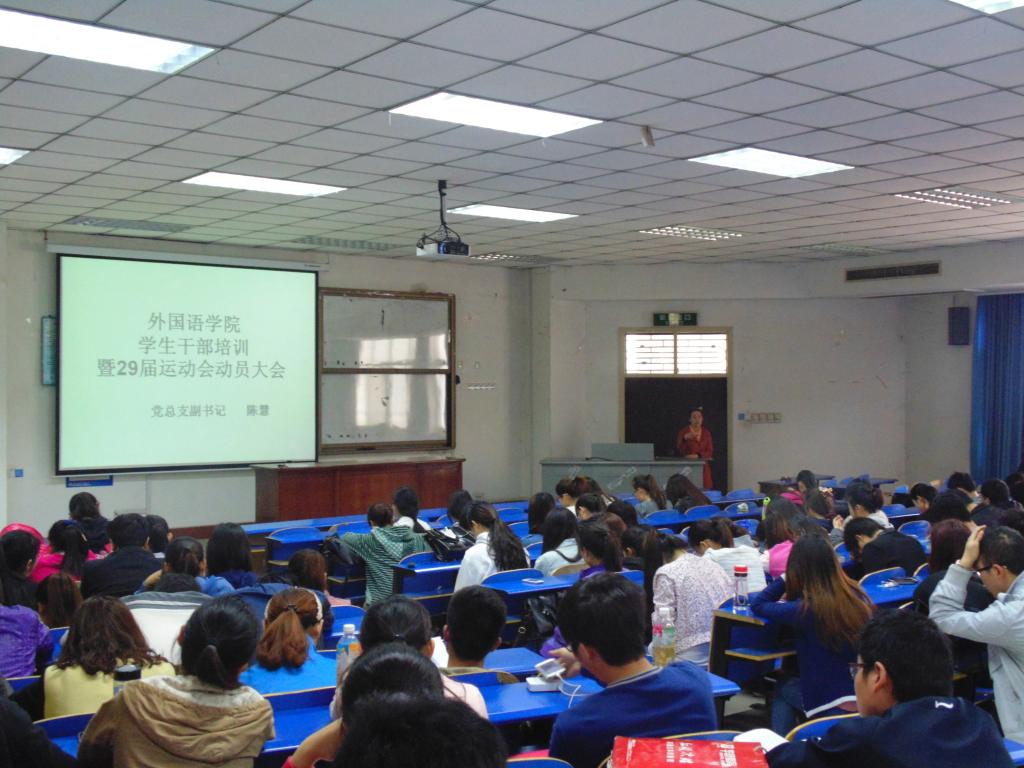 四月份,万象城官网召开了万象城allwincity官网学生干部培训暨第二十九届运动会动员大会。大会由团总支副书记张振华主持,党总支副书记陈慧主讲。
