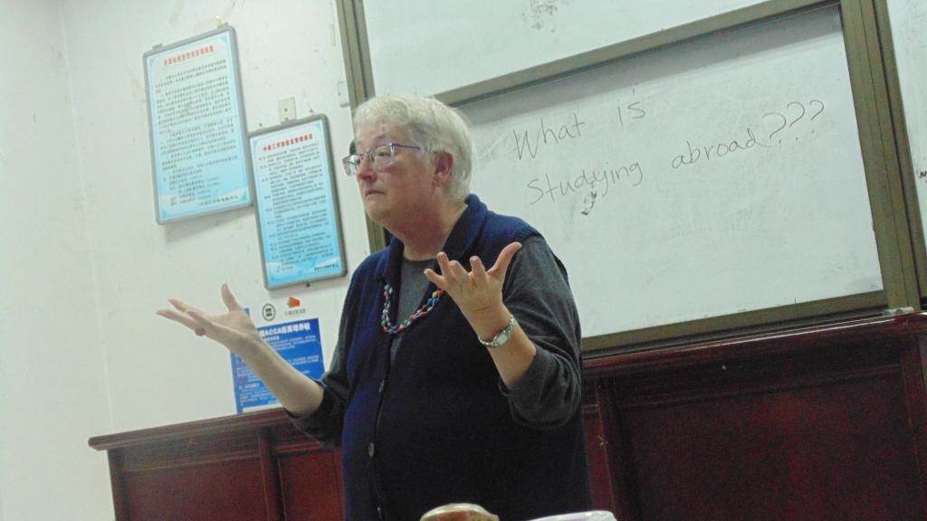 美籍教师Jan女士就“What is studying abroad”为话题,向大家绘声绘色地描述了她的国外旅行与学习。Jan女士亲切和蔼的声音拉近了与同学们之间的距离,便于同学们更好地理解。