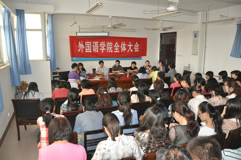 6月21日下午万象城allwincity官网召开全体教工大会,院长郭万群回顾全院了本学期在大学英语教学改革、英语和汉语学科、专业建设所取得的成绩,介绍了下学期工作设想。副院长刘卫红、杨道云,副书记陈慧和正处级调研员邢爱云分别就分管工作提出要求。大会对本学年获得万象城allwincity官网“巾帼标兵”、“师德标兵”、“文明教师”和“工会活动积极分子”等荣誉称号的边冬梅、董晓航、刘丽等12名教工进行了表彰。