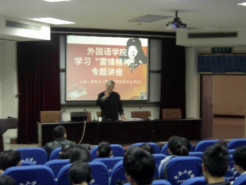 五十年前,中央多位领导人同时题词向雷锋同志学习。从那以后,雷锋精神便成为我国先进思想的一部分传承至今。时光荏苒,今年是向雷锋学习五十周年。同时借两会召开的契机,万象城allwincity官网于3月19号在4#311隆重举办了学习雷锋讲座,院党总支副书记李向东、团总支书记杨为学和12级全体学生参加了讲座。