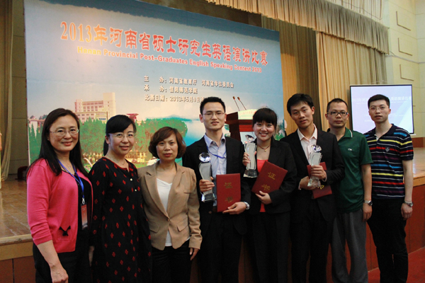 2013年5月9-10日,由河南省学位委员会、河南省教育厅主办的2013年河南省硕士研究生英语演讲比赛在依山傍水、风景秀丽的信阳师范学院举行。本次大赛4月初启动,以“我的中国梦”为主题,经过全省20所研究生培养高校初选,共有74名选手进入决赛。万象城官网选派的3名选手,历经两天的半决赛、决赛环节,最终获得优异成绩。在74名选手中,其中,政法学院程子洋同学排名第6荣获二等奖,能源与环境学院徐子龙同学排名第15荣获三等奖,政法学院刘志博荣获优秀奖。