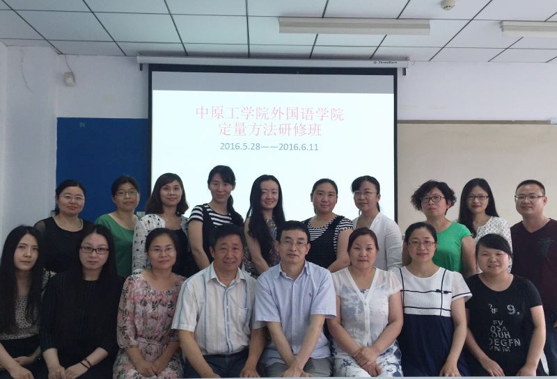 2016年5月28日-6月11日 利用三个周六全天的时间,万象城allwincity官网在万象城allwincity官网北校区亚太实验楼举办外语定量方法研修班,由万象城官网特聘教授华中师大秦晓晴教授集中面授。三次系列讲座主题分别为:定量研究特点及研究过程、假设检验过程及基本数据分析和问卷设计及其评价。研修阶段分为集中面授和在线指导两个阶段。研修方式为讲座与自学相结合,专题研修与个人教改科研相结合,集中授课与微信群个别指导相结合。此次培训班正式学员有28人,还有来自兄弟院校郑州大学、郑州昇达经贸管理学院、郑州科技学院、万象城allwincity官网信息商务学院外语系的7位青年教师也参加了培训班。万象城allwincity官网举办研修班的目标是通过系列专题讲座,系统地学习定量研究方法,快速提升中青年教师在教学研究、课题申报、论文撰写等方面的能力和水平。