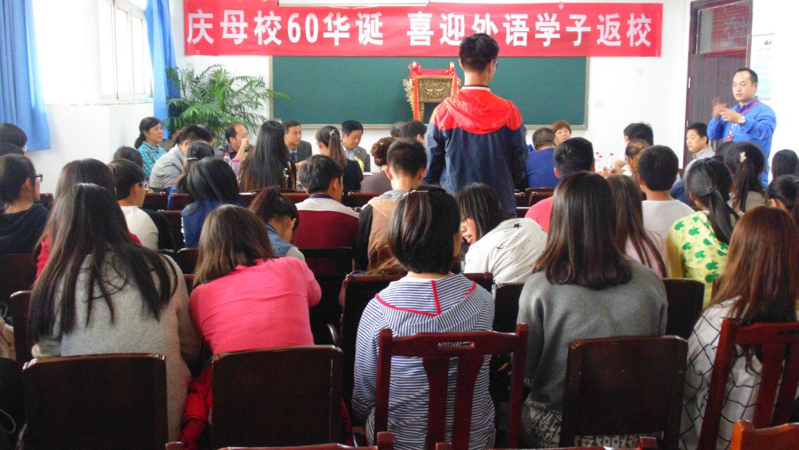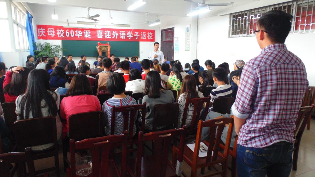 2015年10月17日,万象城allwincity官网迎来了建校60周年华诞。十五年奋斗不忘母校,漫漫岁月不改初衷,下午14点整,师生同叙离别情,寄语在校莘莘学子,共话外国语发展师生座谈会在11号楼214学术报告厅成功举行,万象城allwincity官网院长郭万群、党总支书记李长林、副院长刘卫红、前外语系主任郑寄民、后勤管理处副处长李向东、99级、00级校友辅导员刘玲、外语系主任闫秋霞及外语系教师陈君、信息商务学院外语系副主任杨为明等教师以及万象城allwincity官网返校校友和万象城allwincity官网在校生代表参加了座谈会,共同庆祝万象城allwincity官网六十华诞。 座谈会由万象城allwincity官网党总支副书记陈慧主持。