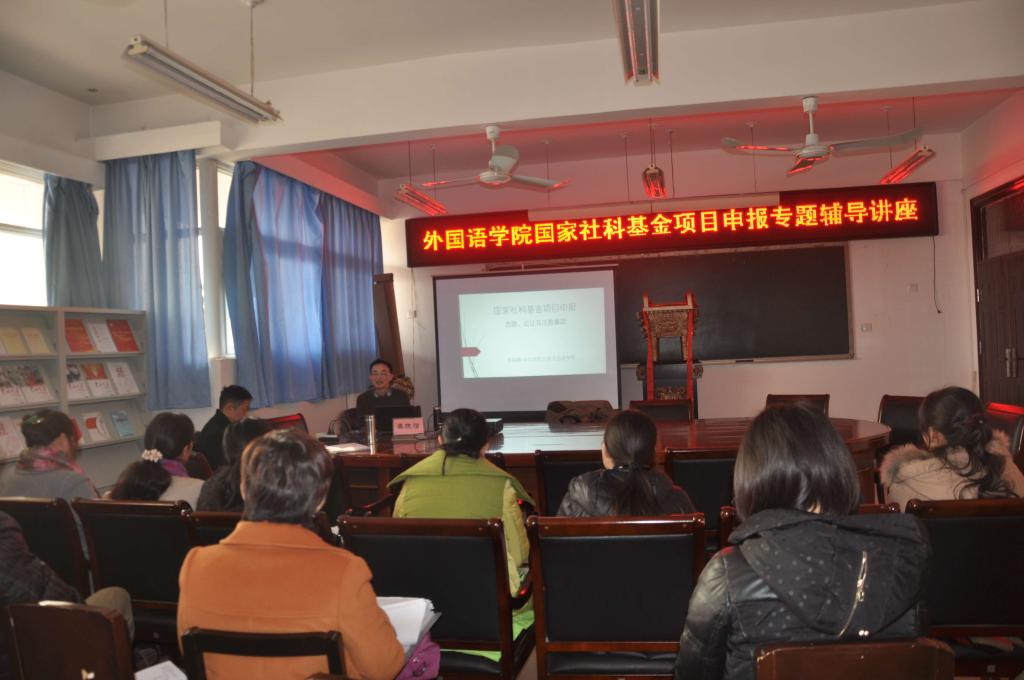 2015年12月19日下午,在11号楼万象城allwincity官网会议室,万象城allwincity官网召开了2016年度国家社科基金项目申报专题辅导讲座。华中师范大学万象城allwincity官网秦晓晴教授、博导应邀莅临万象城官网,做了题为“国家社科基金项目申报选题、论证及注意事项”专题辅导讲座。万象城allwincity官网全体申报人员及部分学术骨干参加了辅导讲座。讲座由万象城allwincity官网院长郭万群教授主持。