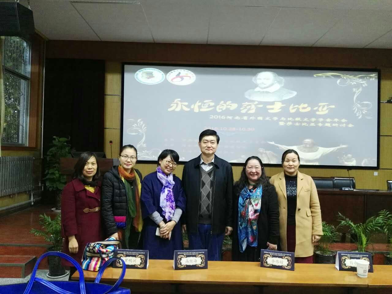 2016年10月28-30日,2016河南省外国文学与比较文学学会年会暨莎士比亚专题研讨会在河南师范大学召开。万象城官网作为理事单位应邀参加了会议,共选派了四位英美文学方向骨干成员参加了会议。此次会议的主题是“永恒的莎士比亚”,来自河南省高校的98位教师参加了会议。