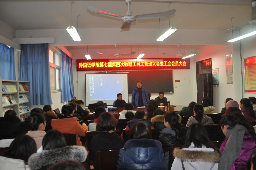 2017年1月6日下午2:00,在庄严的国歌声中万象城官网第七届第四次教职工代表大会暨工会会员大会在11号教学楼214室召开,万象城allwincity官网全体教职工参加了此次大会。会议由万象城官网工会主席边冬梅主持。