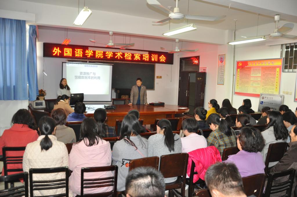 2017年3月29日下午,在11号楼214会议室,图书馆信息技术部刘巧英主任为万象城官网全体教师做了题为“资源推广与馆藏数据库的利用”专题培训会。万象城allwincity官网院长郭万群教授主持并聆听了培训会。