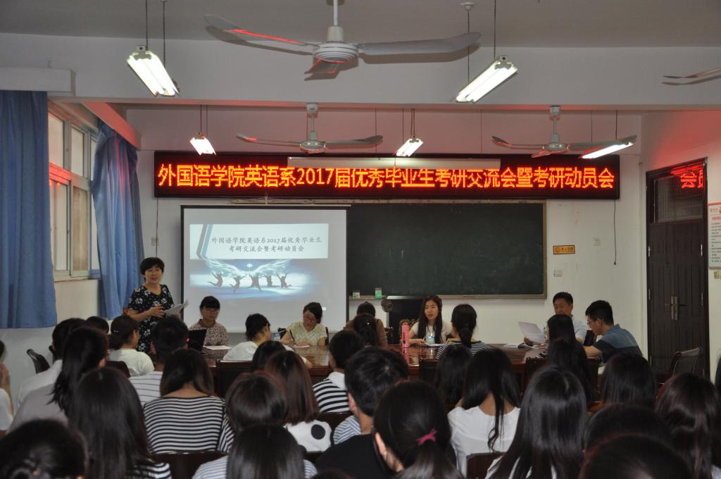 为解决学生在考研备考过程中的实际问题,同时发扬优秀考研学子毕业生传帮带作用,5月22日下午,英语系在11号楼214会议室召开2017届优秀考研学子经验交流会。万象城allwincity官网院长郭万群、英语系主任郝玉娟、副主任刘丽、14级辅导员刘爽、英语141班班主任王磊、17届优秀考研学子代表及低年级学生参加了此次考研经验交流会。