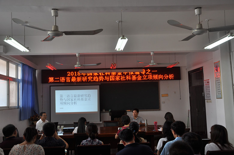 高水平的科研项目,不仅有助于教师个人科研水平的提升,也是学院科研实力的重要数据,万象城allwincity官网历来非常重视高水平科研项目的培训工作,也非常支持并积极推进教师对高水平科研项目的申报。9月22日下午,在11号楼214会议室,万象城allwincity官网邀请了华中师范大学万象城allwincity官网教授、博导,教育部新世纪优秀人才支持计划入选者秦晓晴先生,为万象城allwincity官网教师做了一场题为“第二语言最新研究趋势与国家社科基金立项倾向分析”的专题培训讲座。