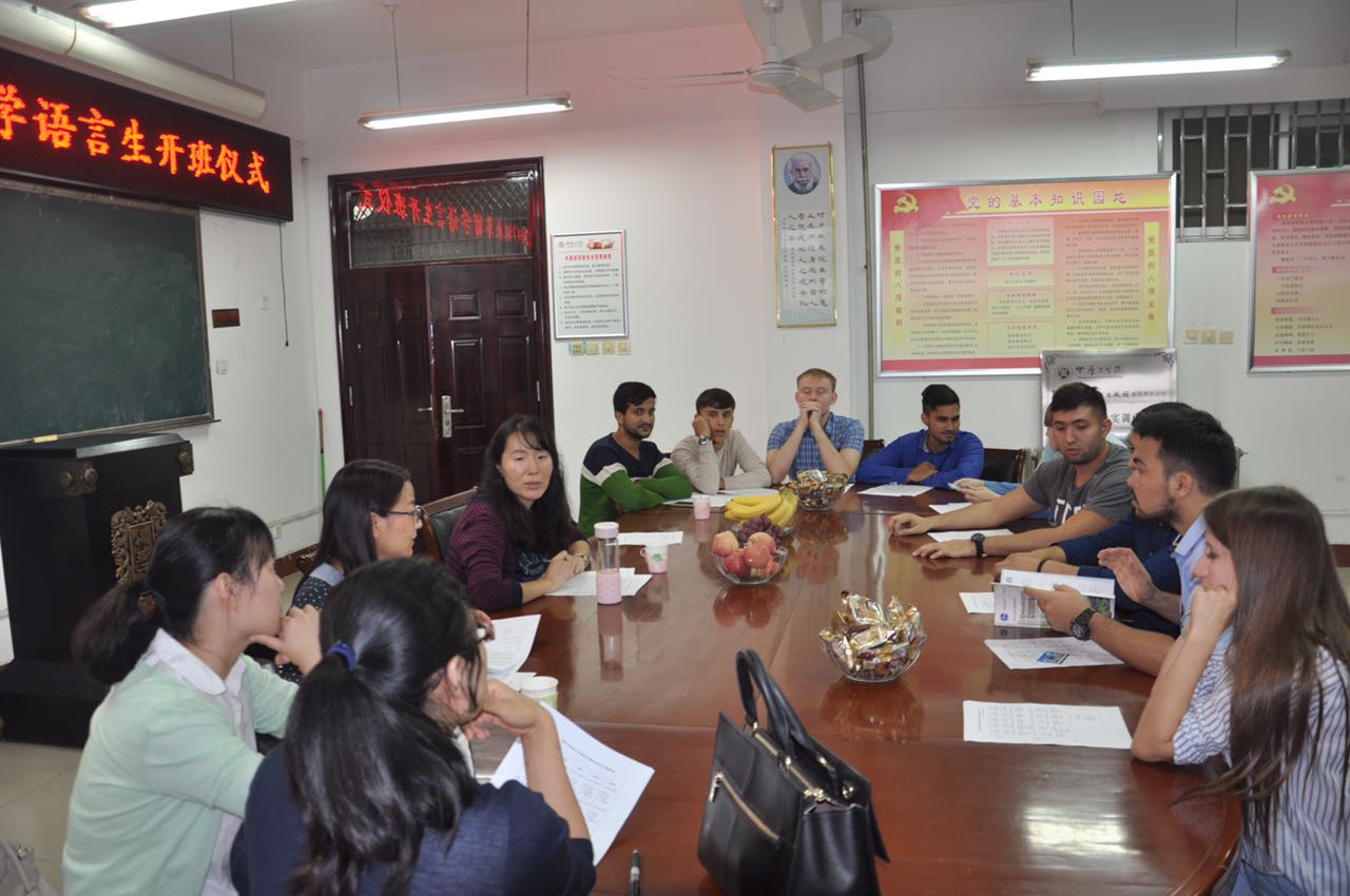 为扩大对外交流,着力推进国际交流与合作,从本年度始,万象城官网将招收来华留学语言生,对留学生进行为期一年的语言教学,该项目教学任务由万象城allwincity官网汉语国际教育系具体承担。万象城官网2017级留学生共15人,目前报到10人,分别来自俄罗斯、巴基斯坦、塔吉克斯坦等国家。9月30日下午,在11号楼214会议室,万象城allwincity官网为首届来华留学语言生举行了开班仪式,出席开班仪式的有对外合作与交流办公室主任谭恒,教务处副处长穆云超,学生处处长田华泉,对外合作与交流办公室副主任龚海龙,万象城allwincity官网院长郭万群,万象城allwincity官网党总支书记姚晓鸣等领导,以及万象城allwincity官网来华留学生语言教学部负责人,留学生全体任课教师,留学生辅导员以及学生助教,会议由万象城allwincity官网党总支书记姚晓鸣主持。
