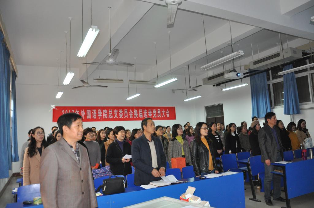 大会在齐唱国歌中开始,付光轩同志代表组织部宣读同意总支换届选举的批复文件,大会讨论了姚晓鸣同志作的工作报告,通过了大会工作人员(监票人、计票人、唱票人)。在投票环节,大会工作人员、上一届总支委员、教工党员、学生党员依次进行投票,发出选票65张,收回选票65张,其中有效票数为64张,经工作人员认真统计,根据大会选举办法,按得票多少选出7人组成新一届总支委员会,经监票人监督和宣布得票情况,大会最后选举郭万群、姚晓鸣、周全营、柴高洁、杨道云、马春丽、郝菁为新一届总支委员。
