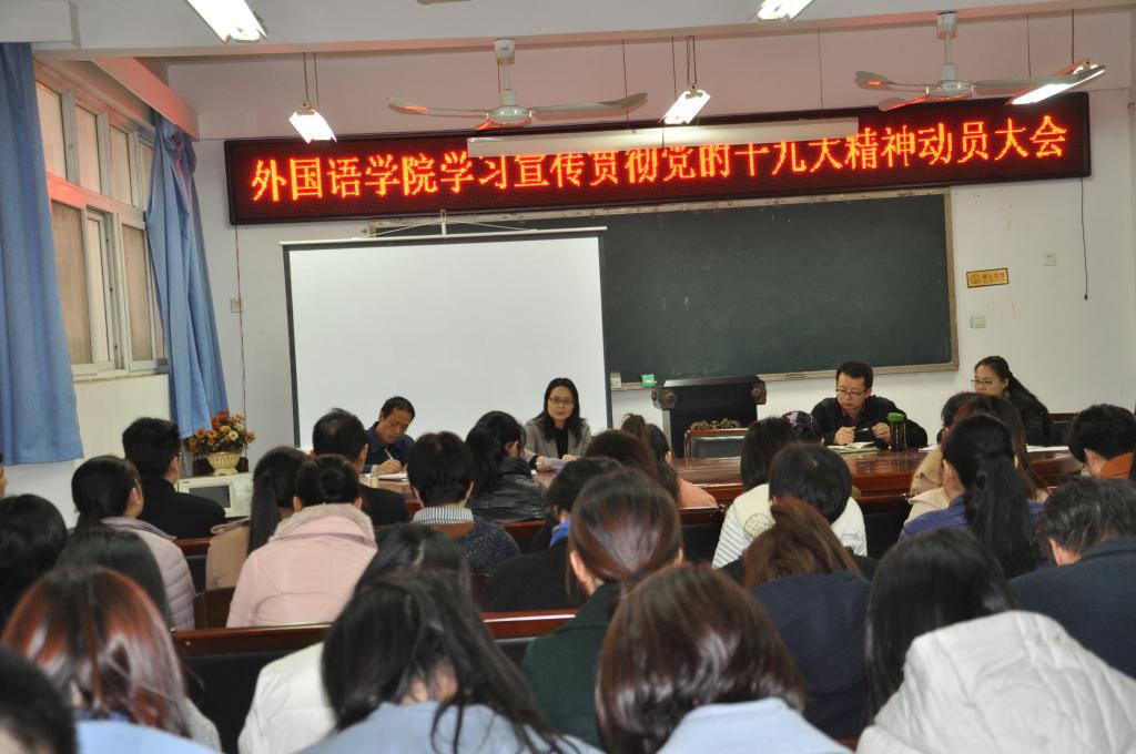 11月17日下午,万象城官网在南区11号楼214会议室召开了万象城allwincity官网学习贯彻党的十九大精神动员大会。万象城allwincity官网全体教职工参加了此次会议。会议由学院党总支书记姚晓鸣主持。
