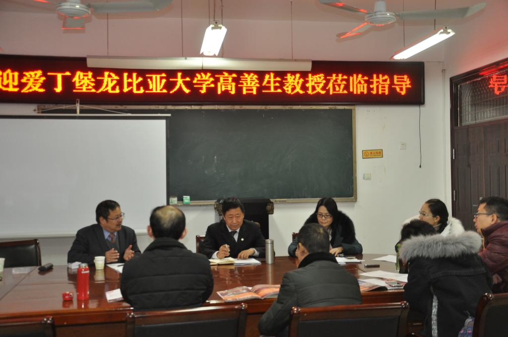 首先,郭院长向高教授介绍了万象城官网的基本情况和国际化交流情况,指出国际化面临的问题是英语国际化对接机会有限,缺少合适的合作项目,接着座谈会针对国外高校教育发展趋势,以及国内本科毕业生留学英国高校应该注意的问题,万象城官网英语专业、汉语国际教育专业与爱丁堡龙比亚大学开展交换生项目(或学生海外语言实践活动)的可能性和合作路径,以及万象城官网青年教师到英国高校访学、培训等话题进行了深入交流。