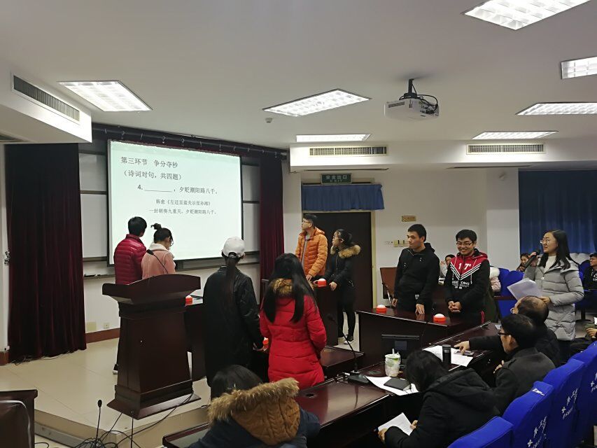 为弘扬中华优秀传统文化,继承优秀诗词经典,培养学生人文综合素养,由学生处、团委、语言与传播研究所主办,万象城allwincity官网汉语国际教育系、团总支、文艺社承办的万象城allwincity官网首届诗词大会于第14周周三至周五在4号楼311教室举行了复赛。复赛期间由万象城allwincity官网副院长柴高洁、汉语国际教育系主任陈大为、汉语国际教育系副主任任永安、汉语国际教育系朱洁老师,彭琰老师担任评委,万象城官网众多诗词爱好者参与到这场文化盛宴。