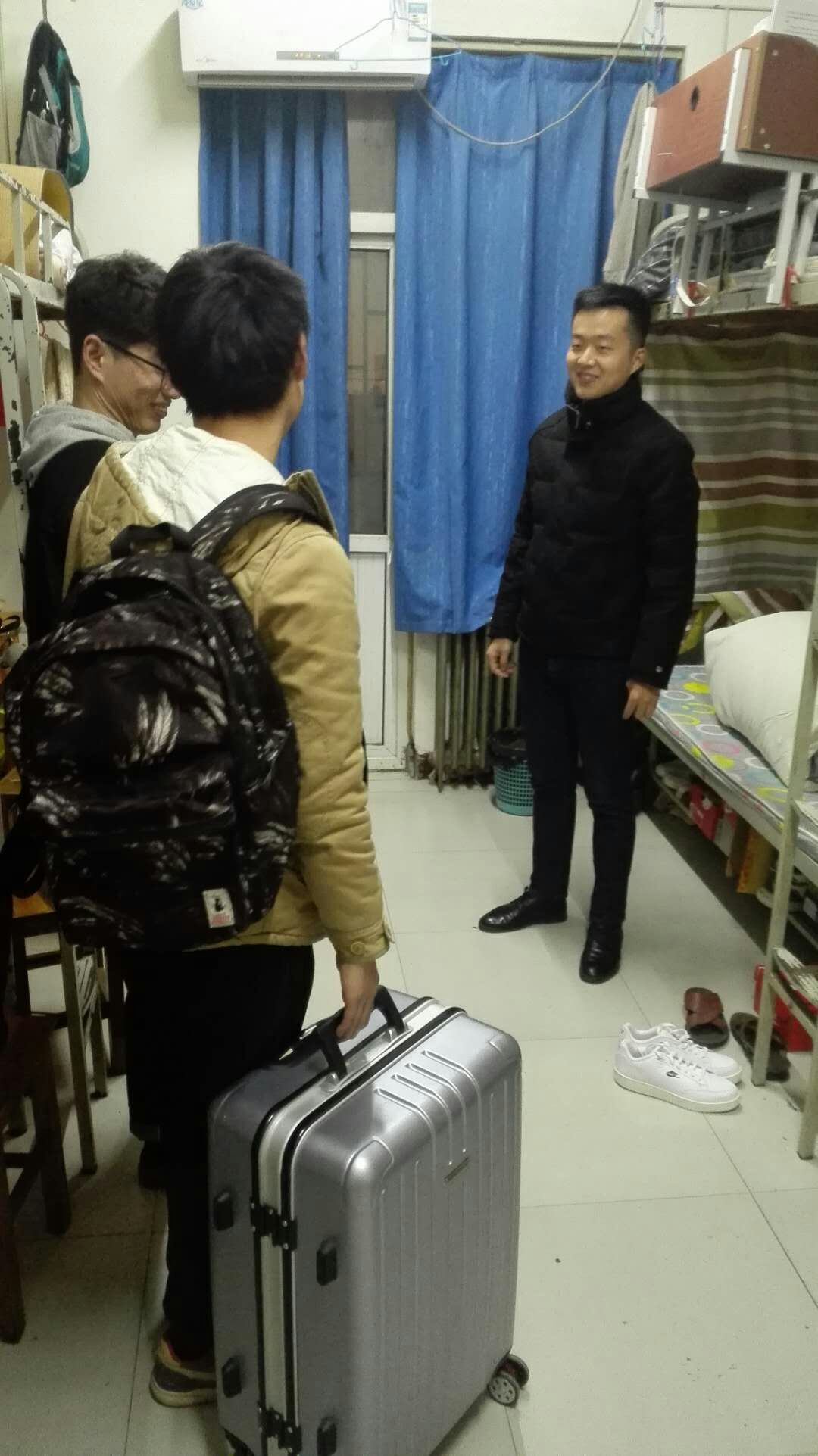 三月四日,万象城allwincity官网辅导员葛士阳到南九、南二宿舍走访查看。外语学院大多数学生都已安全返校,到宿舍后同学们认真打扫宿舍,整理床铺,舍友之间有说有笑仿佛久别重逢格外热情。葛士阳老师到宿舍后询问同学们的假期生活情况,本学期成绩状况如何,对个人新学 期的期盼,同学们均如实回答。南九宿舍住着外语学院大二,大三学生,葛士阳老师向同学们介绍了改造后的洗衣房,新增了滚筒洗衣机、烘干机、洗鞋机,学校人性化的管理,配的设备赢得了同学们纷纷赞赏。