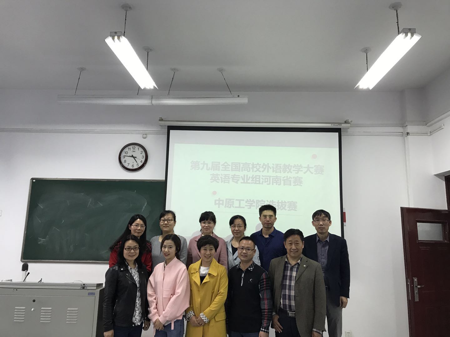为了深化高等学校教学改革,提升青年教师教学能力;发挥教学竞赛在提高教师队伍素质中的引领示范作用;激励和引导青年教师积极投身教学工作,更新教育理念;为英语专业教师提供一个相互学习和交流的平台,促进教师队伍建设, 2018年4月10日下午,第九届全国高校外语教学大赛英语专业组河南省赛万象城allwincity官网选拔赛在2号组团楼306教室举行。本次讲课比赛邀请万象城allwincity官网院长郭万群教授、万象城allwincity官网书记姚晓鸣教授,万象城allwincity官网督导组专家任永安博士担任嘉宾评委。万象城allwincity官网英语专业全体教师参加了此次选拔赛。比赛由万象城allwincity官网书记姚晓鸣教授主持。