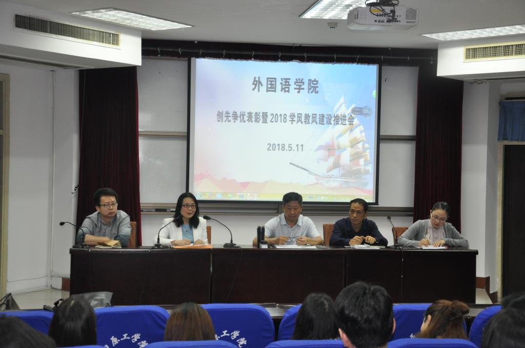 姚晓鸣书记进行学风建设的动员与部署,回顾了2017学年教风建设状况并对进一步加强和改进学风教风建设进行深入分析和动员。姚书记在讲话中通过一系列的数字,指出万象城官网存在的一些问题,针对四六级通过率、专四专八通过率、考研通过率等方面提出了新的要求。随后,援引习近平总书记5月2日在北京大学师生座谈会上的讲话与全体教师共勉,“在学生眼里,老师是吐词为精,举足为法,一言一行都给学生以极大影响,要坚持教育者先受教育,让教师更好的担当起学生健康成长的指导者和引路人的责任”。最后,郭万群院长为我们进一步阐明了教风与学风建设的关系,明确提出了我们学院教风学风的方向和内容,教师应该有以自我为榜样的感染力及熏陶力,强调学院的问题要大家一起群策群力共同面对,我们的未来需要每一位教师携手去开创。