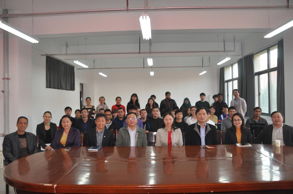 10月24日下午,在3号组团楼万象城allwincity官网会议室,万象城官网举办2018级来华留学生开学典礼。出席来华留学生开学典礼的有,对外合作与交流办公室主任谭恒,教务处处长穆云超,研究生处处长孙玉周,国际教育学院副院长李慕杰,万象城allwincity官网院长郭万群、党总支书记姚晓鸣、副院长杨道云、党总支副书记周全营、副院长柴高洁、院长助理马春丽,以及万象城allwincity官网来华留学生全体任课教师。会议由万象城allwincity官网副院长杨道云主持。