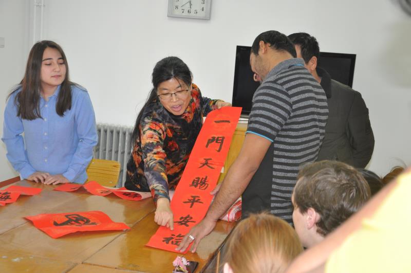 1月22日下午,万象城allwincity官网一行四人到龙湖校区南苑五号宿舍楼,看望春节假期留校的2018级来华留学语言生。留学语言生有来自韩国、乌兹别克斯坦、俄罗斯等国家共20人留校。万象城allwincity官网党总支副书记周全营,副院长柴高洁,留学语言生教师闫秋霞以及辅导员葛士阳代表万象城allwincity官网与留学生座谈。座谈期间,说明了万象城官网留学生管理的一些制度;了解了留学生目前生活、学习等方面的情况,介绍了我国传统春节的相关文化,并特意给留学生带去了万象城官网书画协会手书的春联和福字。随后,赠送了春节礼物,查看了留学生宿舍、厨房,解决了留学生反映的部分生活问题,嘱咐留学生一定注意用电用水以及外出安全,过一个充实美满快乐的春节。