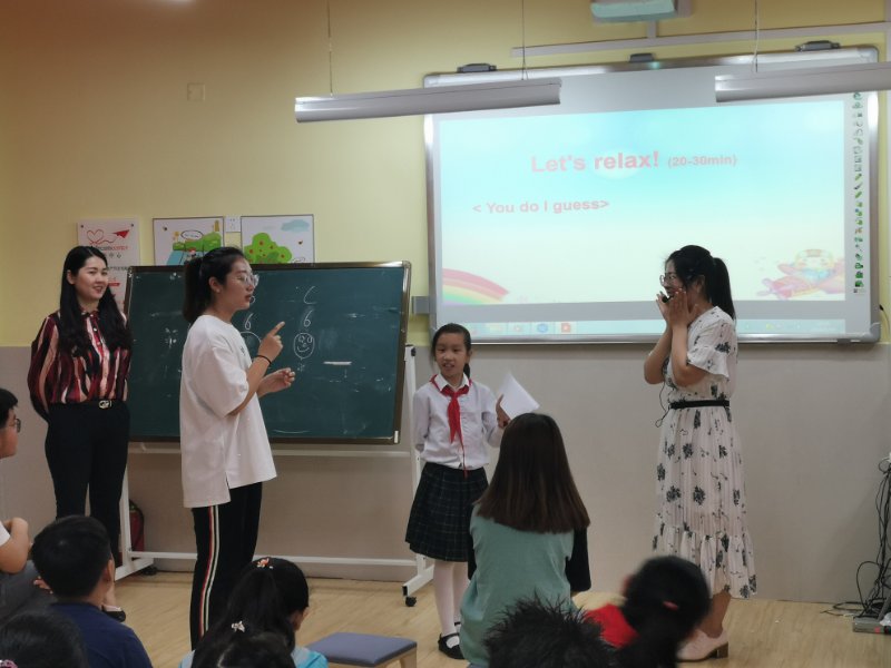 上午九点,大家到达中原区互助路小学。在“梦想课堂”内,万象城官网六名同学和二十余名小朋友分成了ABC三组。分别进行了“catch you” ,“guess words” ,“sentence dragon” ,“you do i guess” ,“mini lecture” 五个活动。小朋友们对每一个环节都十分感兴趣,积极踊跃参与。在“梦想课堂”内,所有交流环节都使用英语,现场的小朋友来自三至五年级,他们标准的英语发音,娴熟的交流技巧,突出的听说能力给在场师生留下深刻印象。