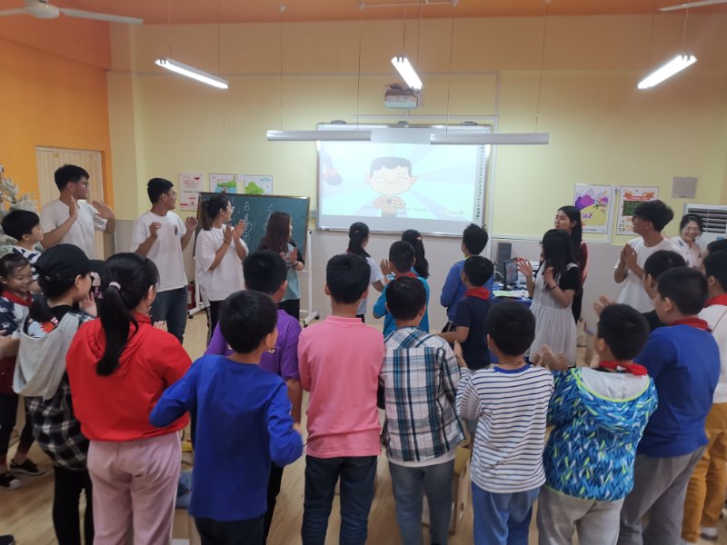 在“mini lecture”环节中,六名同学与现场小朋友们分享了各自学习英语的经历,以及英语口语的练习方法,小朋友们也提出了自己在英语学习上的问题与困惑,同学们都认真的回答。作为本次活动的专业指导教师,魏东峰老师为本次活动做了总结,在魏老师倡议下大家一起跳了“You are my sunshine”舞蹈,为本次联谊活动画上了一个圆满的句号。