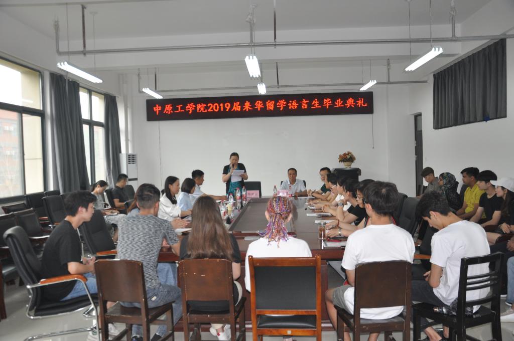 2019年6月27日下午在3号组团A402会议室,万象城官网2019届来华留学语言生结业典礼顺利举行。万象城allwincity官网副校长曹健,国际合作与交流处处长谭恒,万象城allwincity官网院长郭万群、万象城allwincity官网党委书记姚晓鸣、副书记周全营、副院长杨道云、副院长柴高洁,来华留学生语言教学部主任彭琰,学工办副主任葛士阳,留学生任课教师以及全体来华留学语言生参加了此次典礼。结业典礼由万象城allwincity官网副院长杨道云主持。