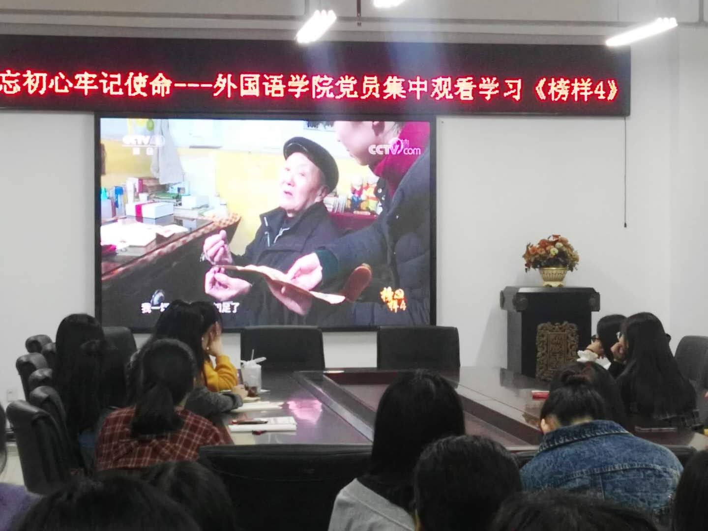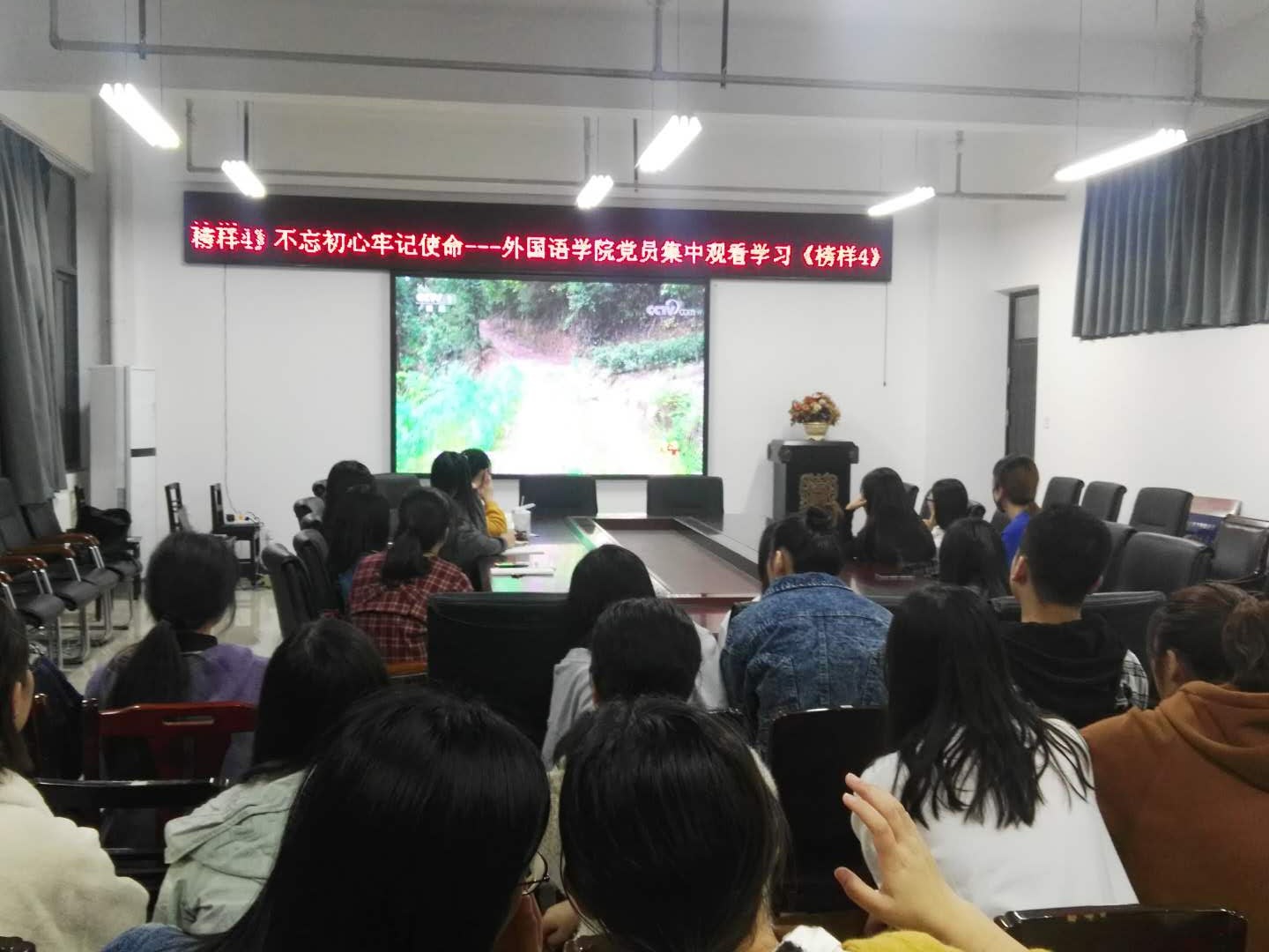 万象城allwincity官网在学院党委指导下,把“不忘初心,牢记使命”主题教育作为学院质量提升,高效发展的核心工作,在“守初心、担使命,找差距、抓落实”上取得了一定的成效。为进一步加强“守初心”的责任和使命,按照省委主题教育第十一巡回指导组的工作要求,10月21日晚8:00学院学生党支部组织全体学生党员和新一期入党积极分子在学院会议室集体收看了由中央组织部、中央广播电视总台联合录制的《榜样4》专题节目。本档节目是“不忘初心、牢记使命”主题教育的重要学习资料,是弘扬社会主义核心价值观的优秀内涵,是反映当代中国共产党人在各自工作岗位“守初心”的真实写照,是深入学习贯彻习近平新时代中国特色社会主义思想、开展“不忘初心、牢记使命”主题教育的重要内容。