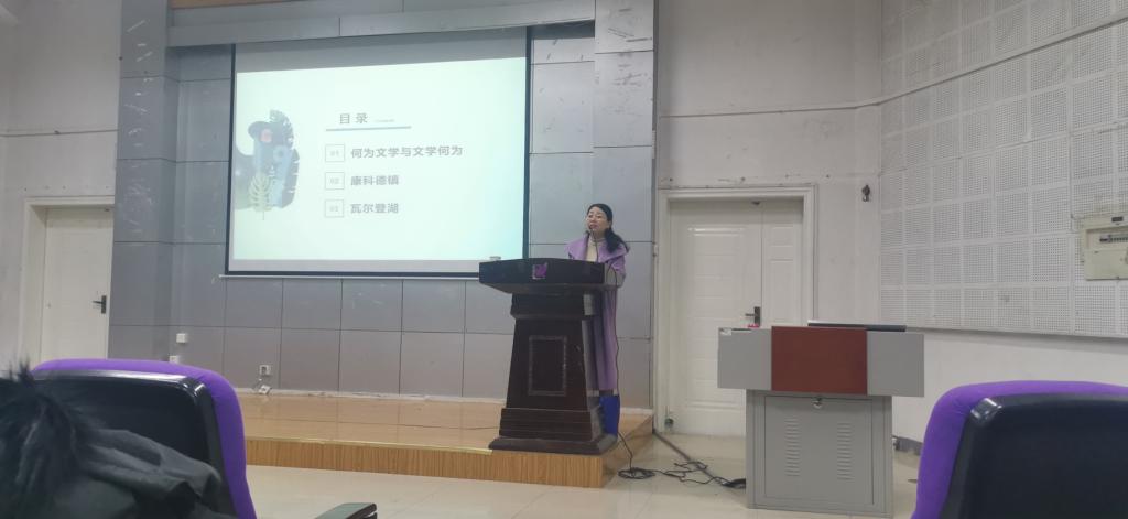 郭建老师的讲座,从龚自珍的“经济文章磨白昼,幽光狂慧复中宵”谈起,指出文学能够展现比宇宙更为广阔、更为深邃、更为神秘的心灵世界。讲座旁征博引,通过王国维、老舍、詹姆斯·伍德、里尔克、雷蒙德·卡佛、卡夫卡等名家的观点,阐释了何为文学与文学何为。讲座结合了本人两次走访文化名镇康科德以及游历瓦尔登湖的经历,与学生一起分享了梭罗的名作《瓦尔登湖》的经典文本,指出“人,诗意地栖居在大地上”的可能性,并为学生解释了如何从余裕的人生走向人生的余裕。