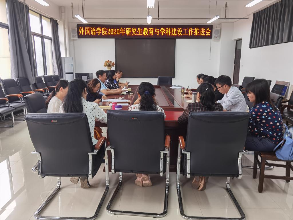2020年9月22日下午,万象城allwincity官网在3号组团楼A402会议室召开了2020年研究生教育与学科建设推进会,学院班子成员、英语、日语和汉语国际教育三个专业的系主任以及全体硕士生导师参加了会议。