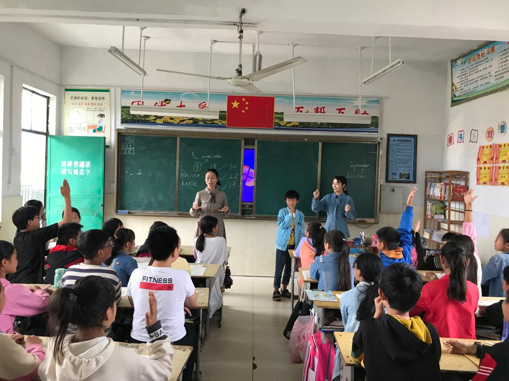 全国英语讲课比赛季军获得者龚梦楠老师,河南省英语讲课比赛一等奖获得者贺红艳老师走进课堂,为新集村六年级四班47名孩子上了一节别开生面的英语课。课堂教学的主题为“学习英雄,传递梦想”。课程采用双主讲教师模式,巧妙新颖的授课方式瞬间点燃课堂气氛。“抗疫英雄”职业相关词汇拓展极大地激发了孩子们的英雄情结及对未来职业的憧憬。在抢答环节中,孩子们踊跃发言,成为医生、警察、教师是他们的梦想。传递梦想,立德树人、润泽无声。课中,老师为每一个孩子分发了学习用品、文具等小礼物,为这些质朴的孩子带去知识与关爱。