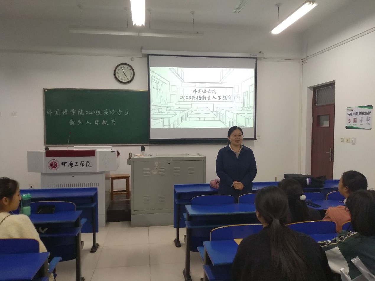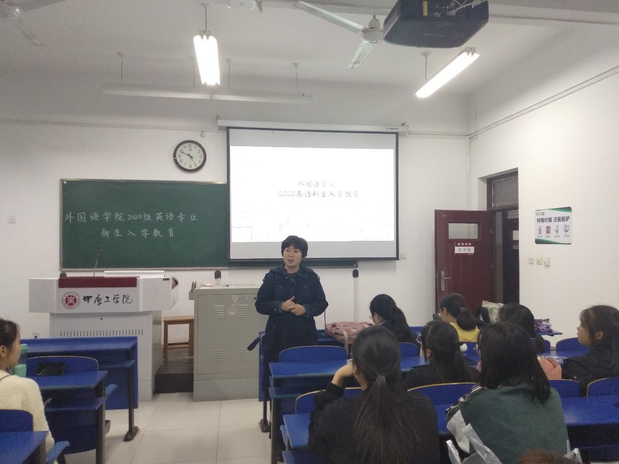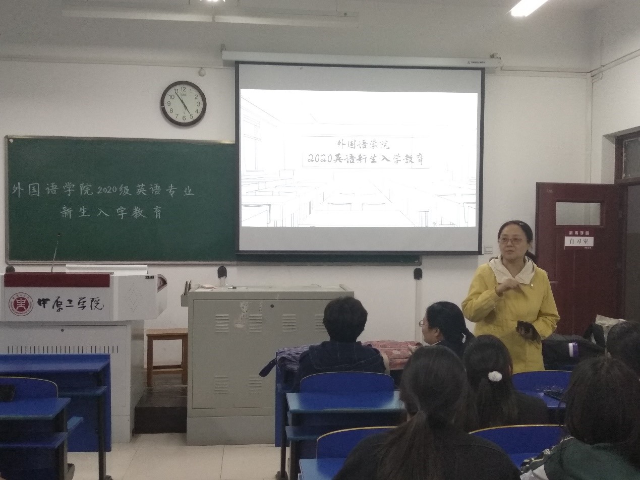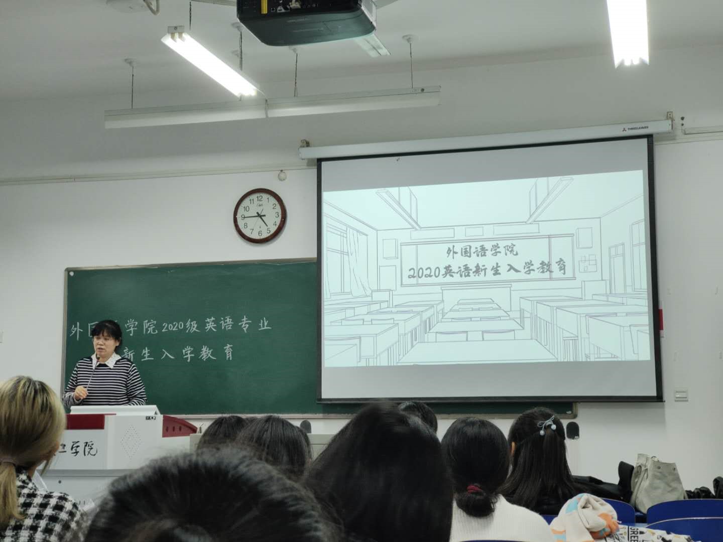 丹枫迎秋,金风送爽。2020年10月13日下午4点30分,万象城allwincity官网在2号组团教学楼217教室成功举办了英语系2020级新生入学专业教育。陈君副教授,段士平副教授,英语系副主任(主持工作)郭亭亭,英语系副主任刘丽以及英语专业2020级全体新生参加了会议。会议由英语系副主任(主持工作)郭亭亭主持。