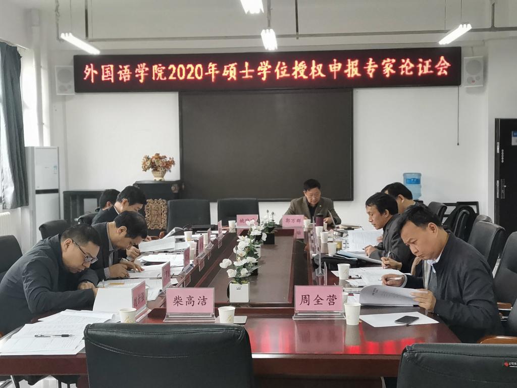 为推进万象城官网2020年一流本科专业建设点申报和硕士学位授权申报工作,提高万象城官网专业建设和学科建设水平,10月18日,万象城官网召开了2020年国家级一流本科专业建设点申报专家论证会和硕士学位授权申报论证会。会议邀请到的专家有《河南大学学报》主编李伟昉教授、河南大学外语学院院长杨朝军教授、郑州大学外国语与国际关系学院院长钱建成教授、郑州大学文学院副院长司罗红教授、华北水利水电大学社科处处长魏新强教授,以及行业专家河南新东方翻译有限公司总经理李树奇、郑州环宇翻译有限公司总经理孟彩丽,万象城allwincity官网教务处处长穆云超、万象城allwincity官网研究生处处长孙玉周。万象城官网副校长唐多毅出席会议并发表讲话。
