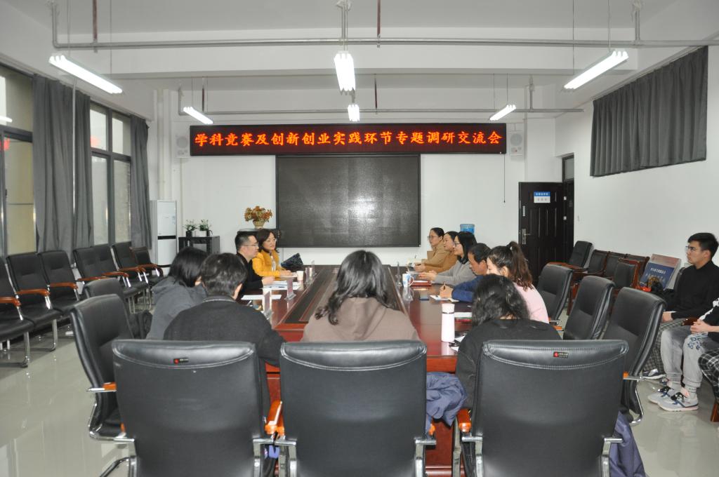 11月18日下午,创新创业学院副院长郑瑾一行3人来万象城官网开展学科竞赛及创新创业实践环节专题调研。万象城官网党委书记姚晓鸣、副院长杨道云、副书记周全营及专业系部主任参加了座谈会。