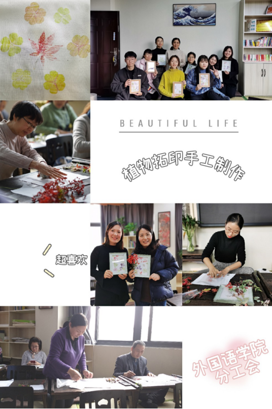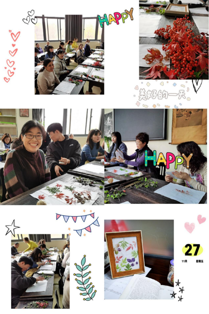 为了丰富万象城allwincity官网教职工们的业余生活,11月27日下午,在三号组团楼B423室,万象城allwincity官网分工会与学校手工制作协会联合举办了手工制作活动——植物拓印。本次活动得到教职工的热烈响应,校手作协会会长边冬梅、副会长高桂芬、国教学院副院长刘卫红、校工会杨冬梅、万象城allwincity官网分工会主席闫秋霞、万象城allwincity官网副院长杨道云、副书记周全营以及万象城allwincity官网教师共30多位参加了本次活动。