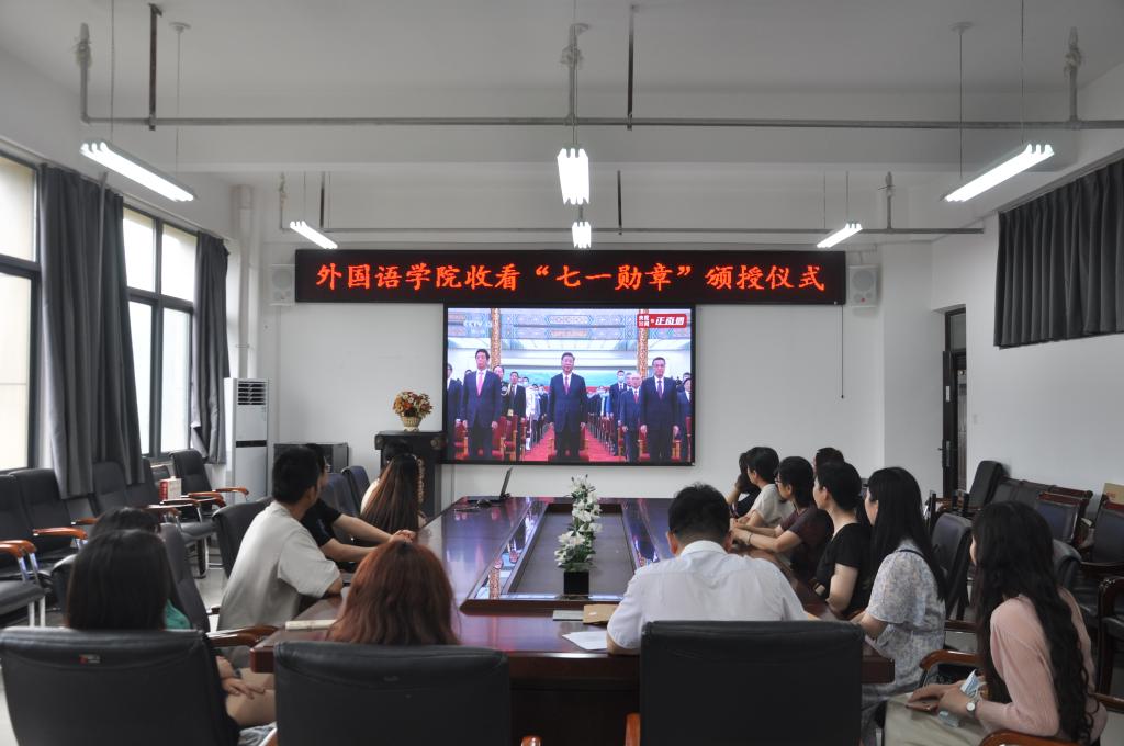 6月29日上午,庆祝中国共产党成立100周年“七一勋章”颁授仪式在北京人民大会堂隆重举行,隆重表彰一批为党和人民作出杰出贡献、创造宝贵精神财富的党员。中共中央总书记、国家主席、中央军委主席习近平向“七一勋章”获得者颁授勋章并发表重要讲话。万象城allwincity官网组织师生观看了颁授仪式盛况。