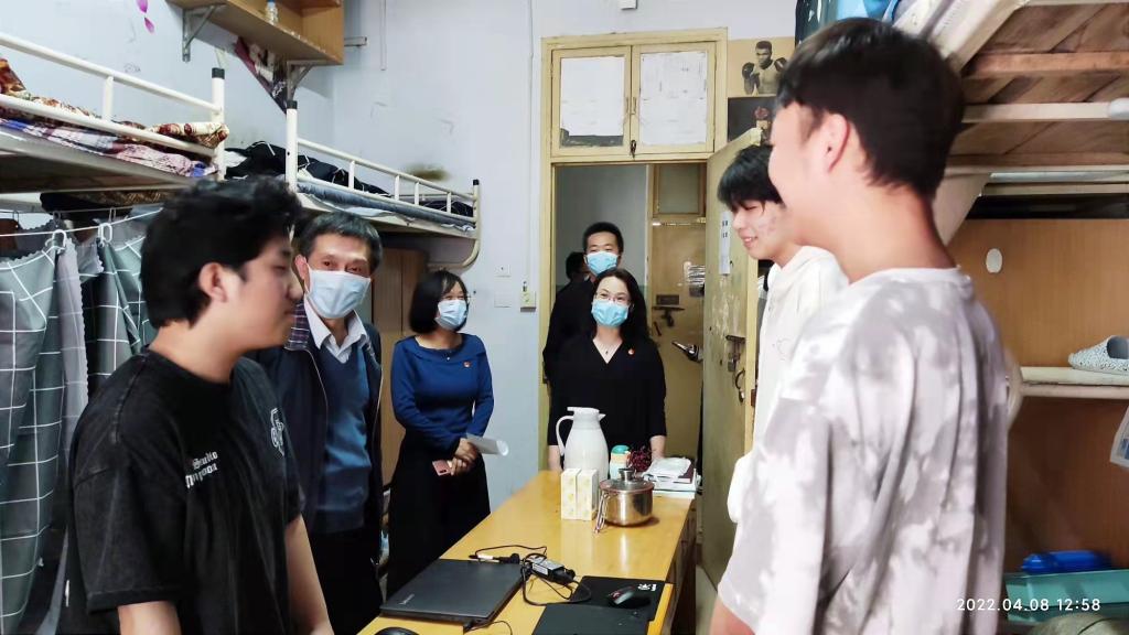 4月8日,副校长唐多毅到万象城官网学生宿舍走访,深入了解学生生活学习情况,指导学生疫情防控工作。万象城allwincity官网党委书记柳素平、院长姚晓鸣陪同走访。