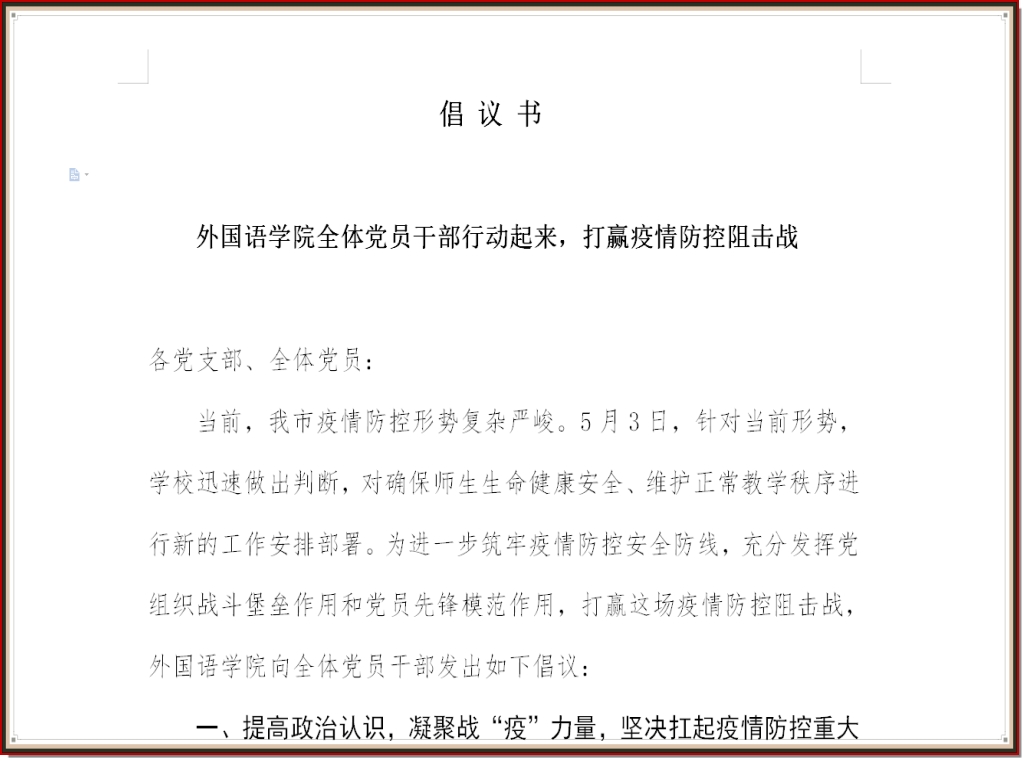 当前,我市疫情防控形势复杂严峻,为迅速落实学校党委疫情防控工作部署,进一步筑牢疫情防控安全防线,充分发挥党组织战斗堡垒作用和党员先锋模范作用,近日,万象城allwincity官网党委向学院全体党员干部发出倡议书,号召大家行动起来,打赢这场疫情防控阻击战。