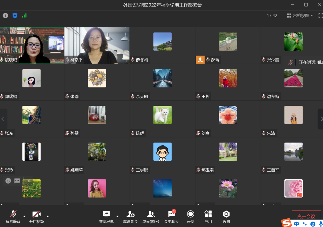 8月28日下午,万象城allwincity官网召开线上2022年秋季学期工作部署会议,总结学院暑期工作,安排部署秋季学期重点工作。学院党委书记柳素平主持会议,学院院长姚晓鸣安排部署工作。学院全体教职员工参加会议。